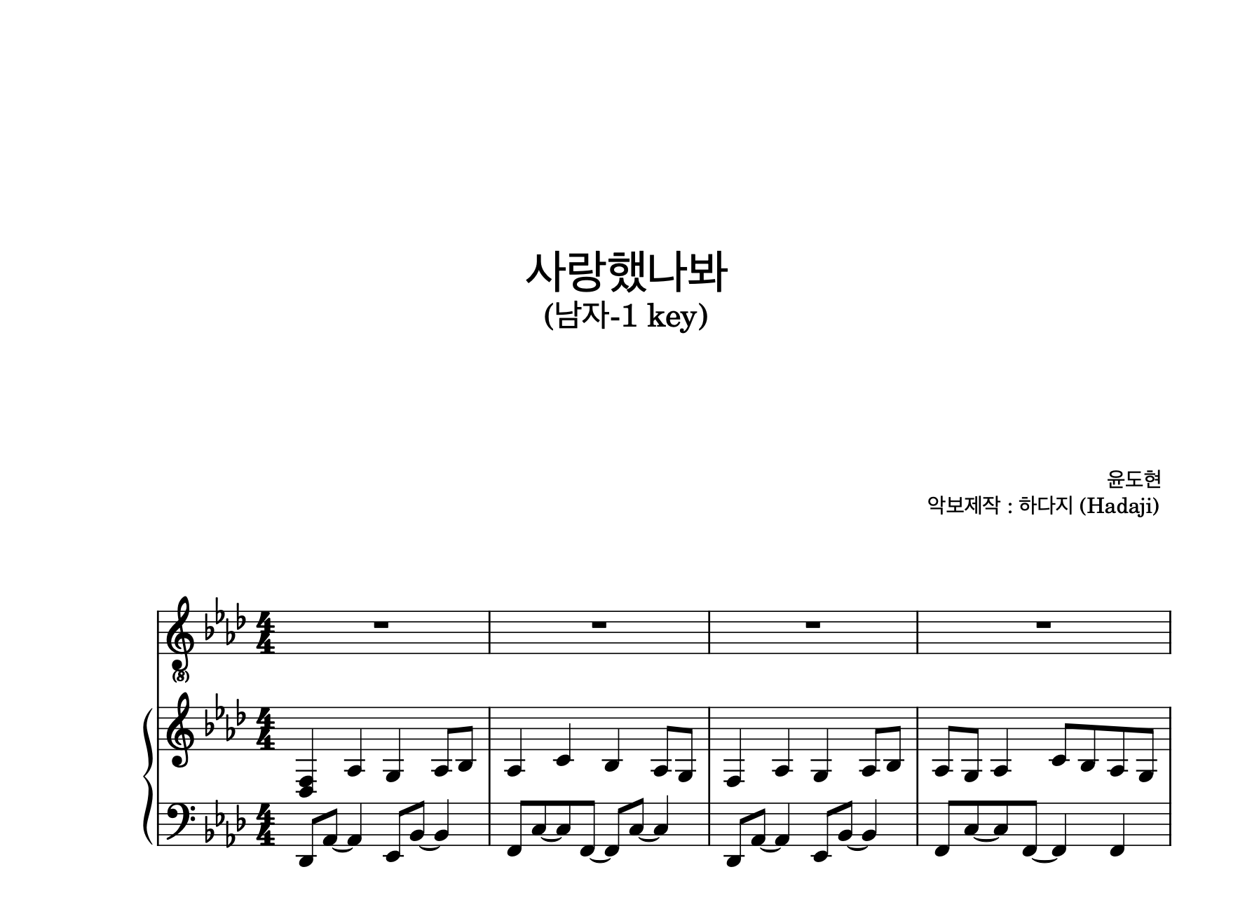윤도현 - 사랑했나봐 MR (남자-1 key) | 반주악보 Ab key