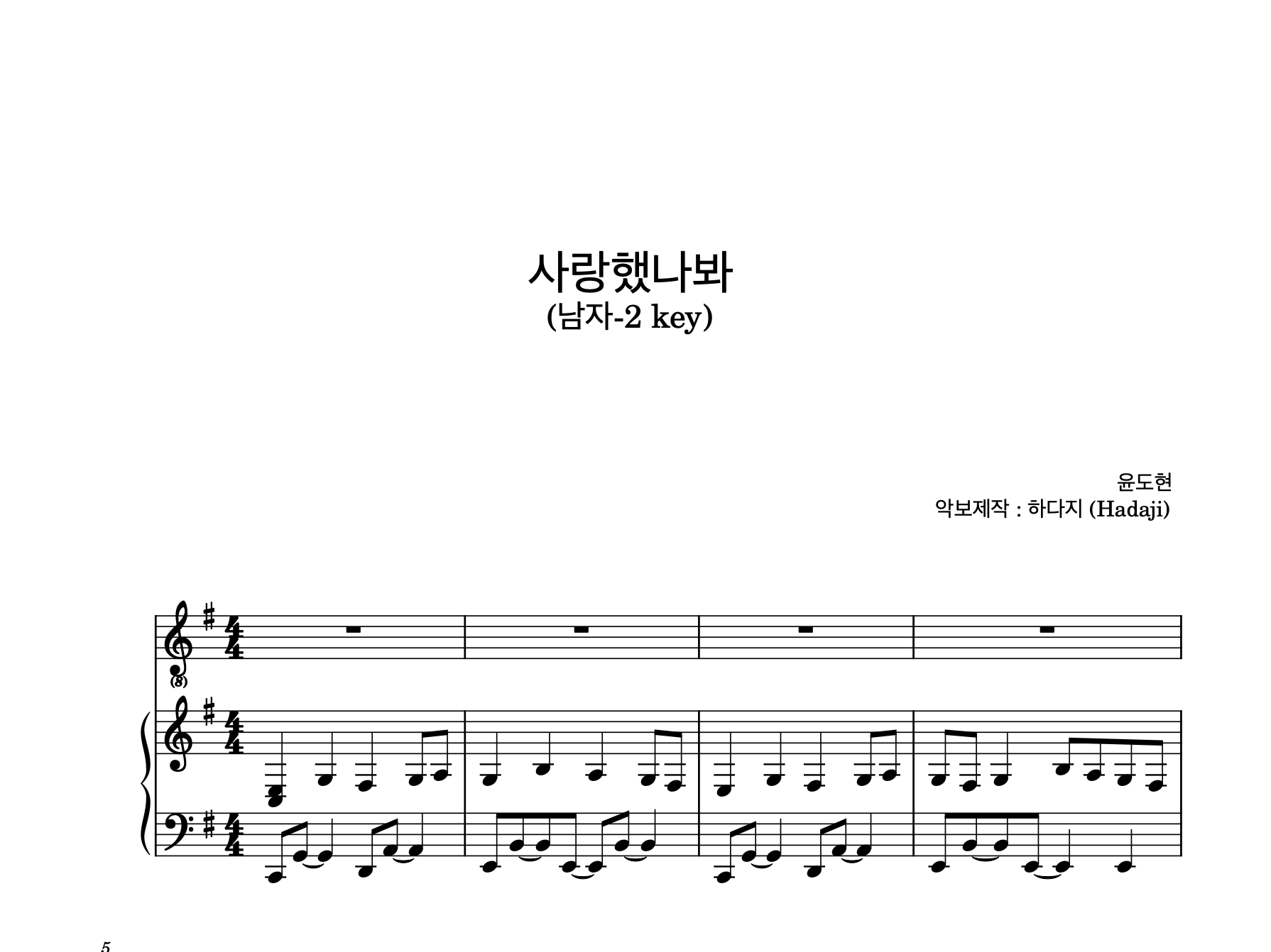 윤도현 - 사랑했나봐 MR (남자-2 key) | 반주악보 G key