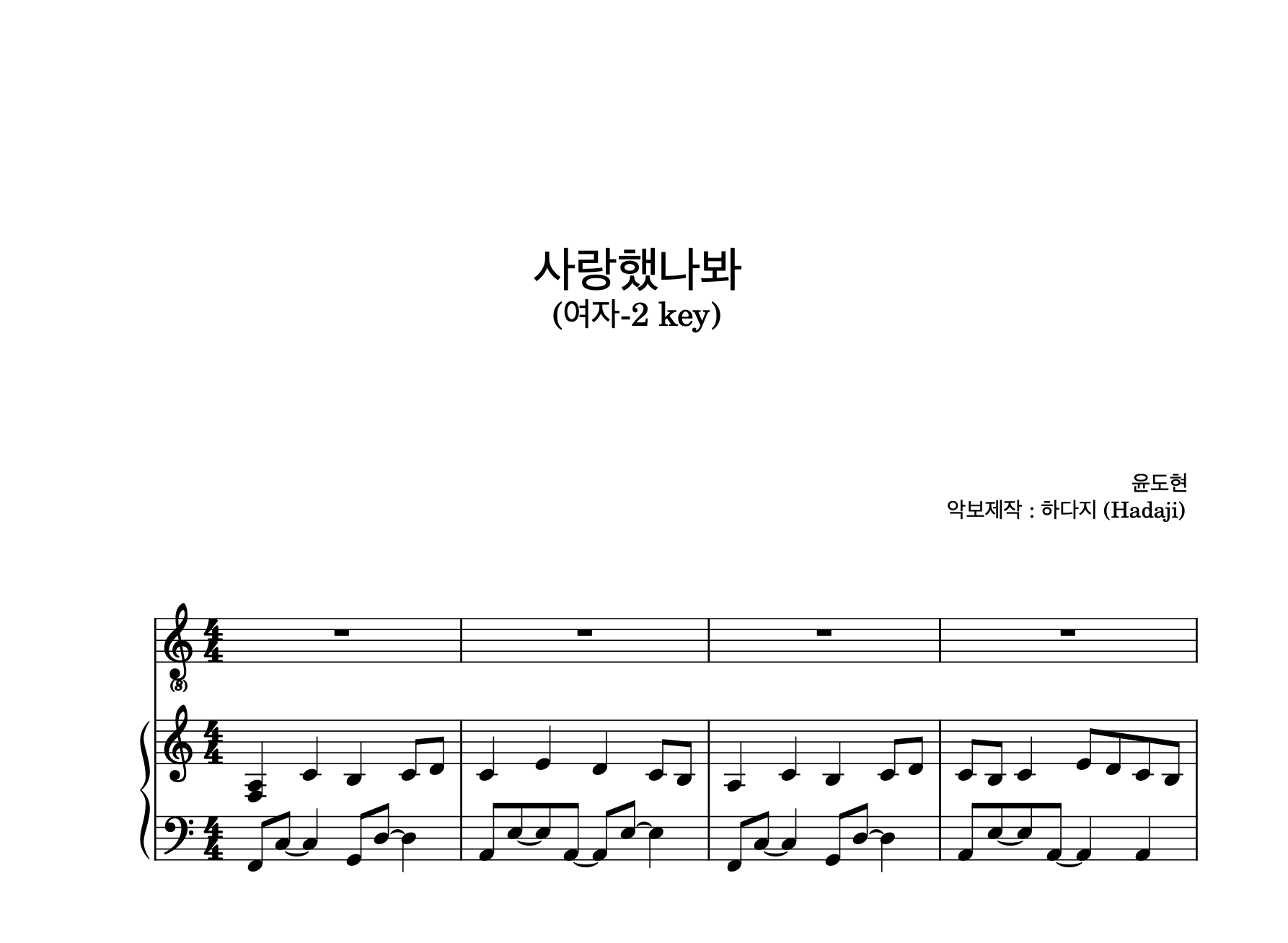 윤도현 - 사랑했나봐 MR (여자-2 key) | 반주악보 C key